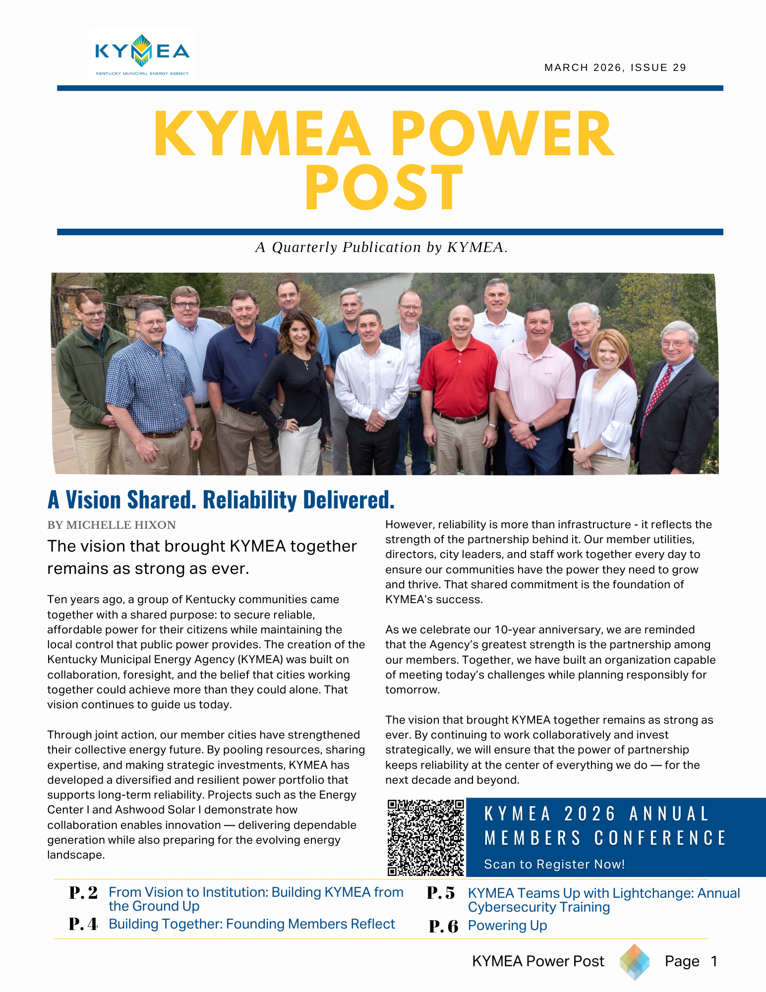 We’re honored to share that our President & CEO, Doug Buresh, recently joined the American Public Power Association (APPA) Power Association’s Public Power Now podcast to discuss KYMEA’s mission, growth, and what lies ahead for our agency and the communities we serve. Thank you to the APPA for the opportunity to spotlight how KYMEA is […]